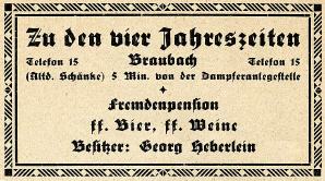 Die unten abgebildeten Anzeigen stammen auch einem Wanderführer, der im Jahre 1928 erschien.