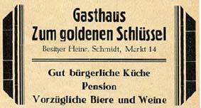 | Goldener Schlüssel um 1920 - Besitzer war Heinrich Schmidt ..... | die Tochter Else Schmidt heiratete Max Köbeler den späteren Inhaber |