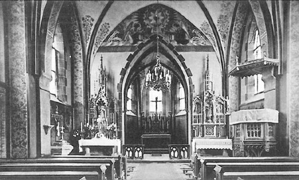 Pfarrer Schäfer ließ die Kirche renovieren man entfernte die schönen holzgeschnitzten Seitenaltäre und die Wandbemalung wurde weiß überstrichen.