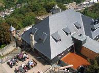 Entsetzen machte sich breit, enfernt wohnende Angehörige oder Bekannte riefen in Braubach besorgt an und erkundigten sich. Wahr ist, daß in der Nacht auf Donnerstag, den 6. Juni, ein Brand das Gebäude der Marksburgschänke weitgehend zerstört hatte. Betroffen war vor allem das 1. OG des Schänkengebäudes, die Wohnung der Pächterin, das Treppenhaus und die davor liegende WC-Anlage. Einen geringen Schaden durch Löschwasser gab es im Souvenirverkaufsraum und im Büro der Pächterin. Stärkere Schäden, ebenfalls vor allem durch Wasser, in der Küche. Das eigentliche Torhaus und die "Mittelrheinstuben" der Schänke blieben verschont. Die Burg hat allerdings riesiges Glück gehabt, dass der Wind aus der richtigen Richtung kam und den erheblichen Funkenregen weg getrieben hat - sonst wäre eine Gefährdung der gesamten Burg die unvermeidliche Folge gewesen! Das Feuer wurde übrigens ausgelöst durch eine brennende Kerze im Zimmer des 12-jährigen Sohnes der Pächterin.