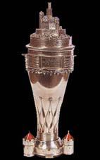 Bild rechts: Von Bodo Ebhardt für den Willkommenstrunk auf der Marksburg entworfener Willkommen-Pokal aus Silber und Email mit einer Nachbildung der Marksburg als Deckelkrönung. Hergestellt vom Hofjuwelier J. S. Werner 1906/07.
