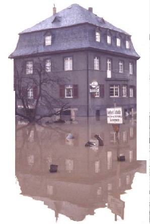 | Hochwasser 1983 - Bauernschänke "Eckfritz" | Hochwasser 1978 - Gasthaus "Rheinblick" |