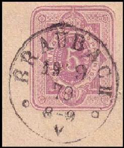 Unten: Briefmarken von Thurn & Taxis Jahr 1875 - Stempel von Braubach-