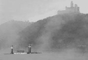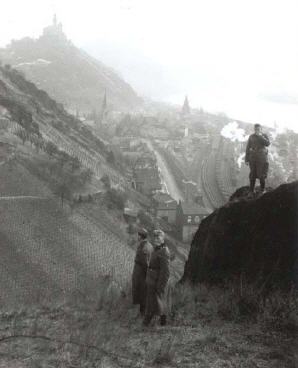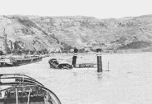 Jeder kennt das Lied: " Oh du wunderschöner deutscher Rhein", doch das traf damals nicht ganz zu. Zwischen Kaub und Remagen, auch in Braubach ragten die versunkenen Schleppdampfer und -kähne aus den Fluten. Auf den Bildern durch Bomben versenkte Raab-Karcher-Schleppdampfer. Bei Niedrigwasser sah man überall noch Bombenreste und Blindgänger, die noch scharf waren, im Flußbett liegen. Die Schifffahrt ruhte für sehr lange Zeit. Die Bergung der auf Grund liegenden Dampfer und Kähne dauerte Jahre. Von Duisburg arbeiteten sich langsam große Dampfschiffskräne vor, um die Schiffsfracks zu bergen.